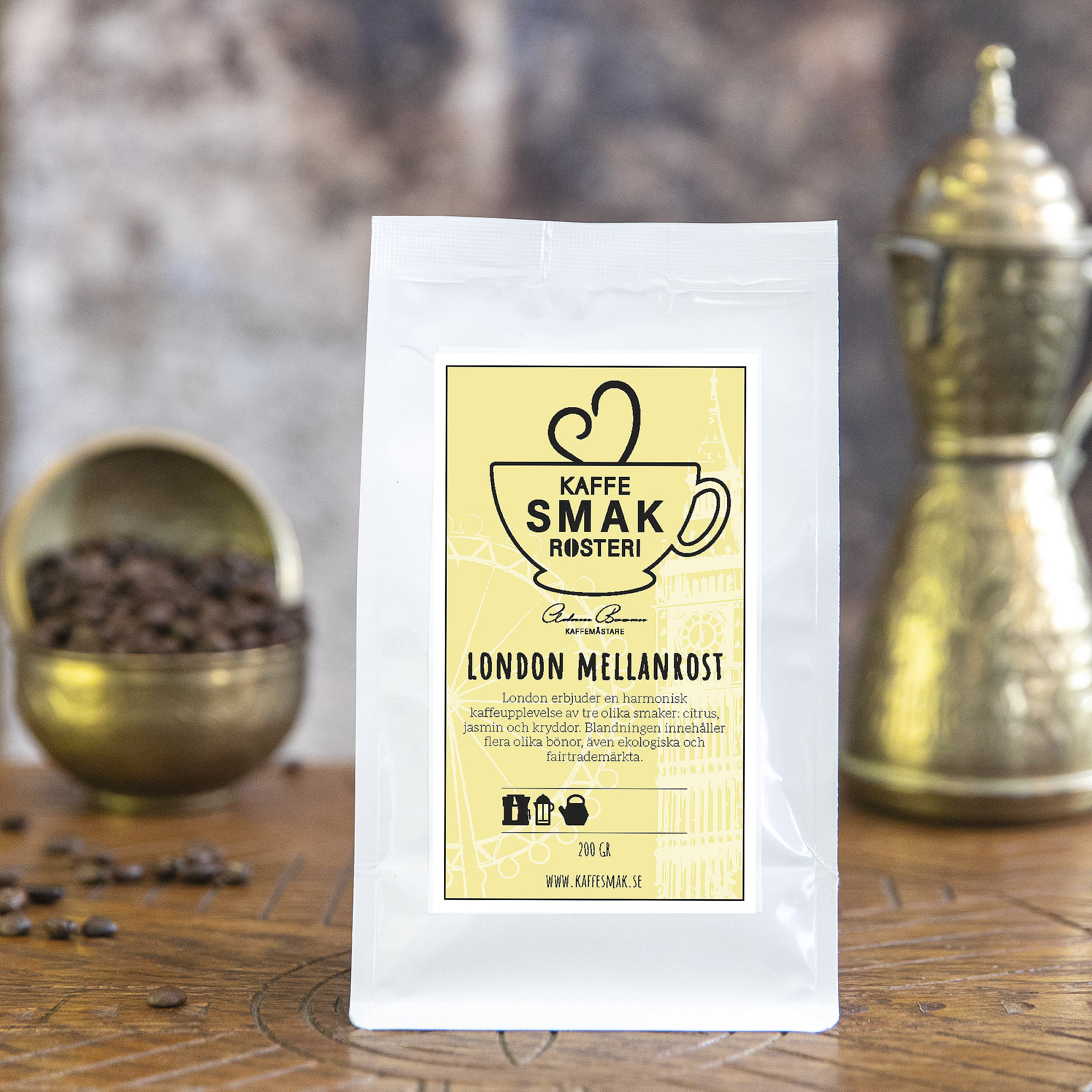 London erbjuder en harmonisk kaffeupplevelse av tre olika smaker: citrus, jasmin och kryddor. Blandningen innehåller flera olika bönor, även ekologiska och fairtrademärkta.